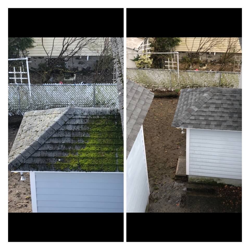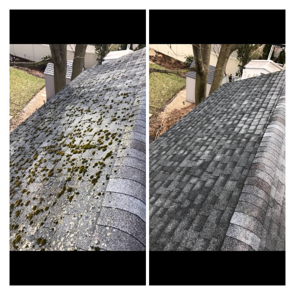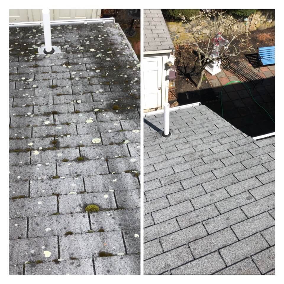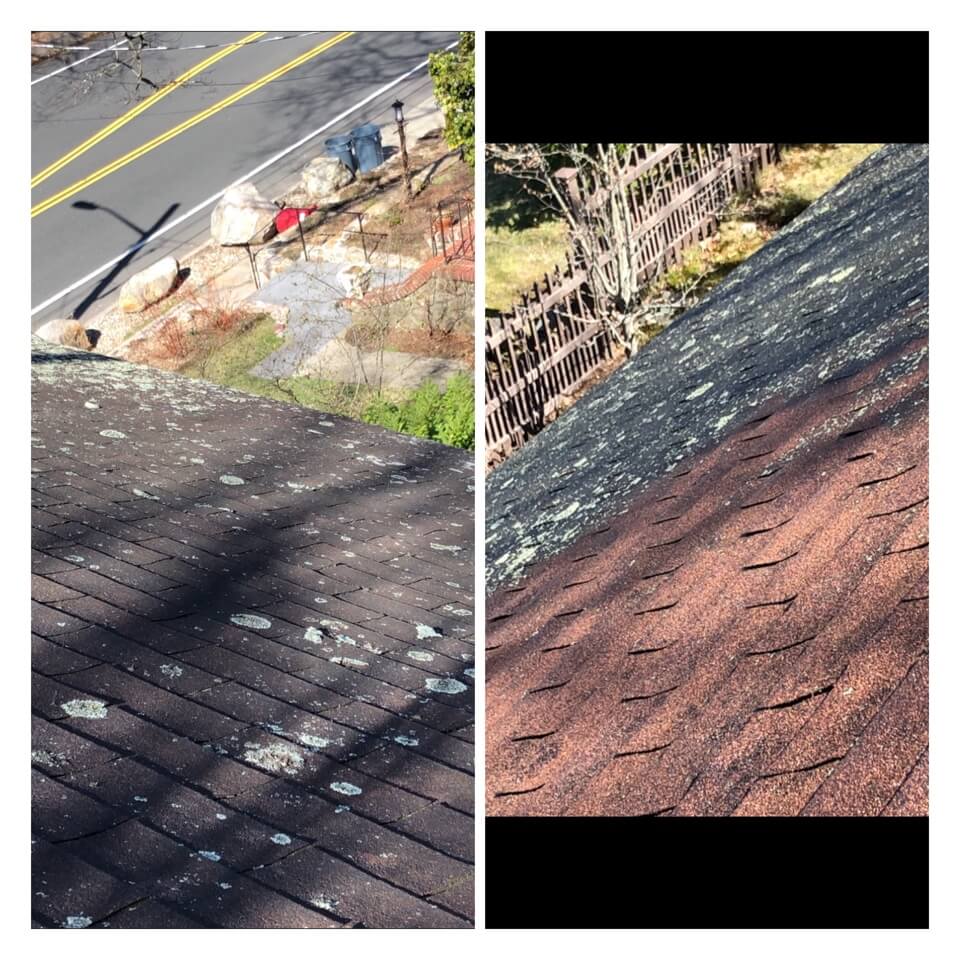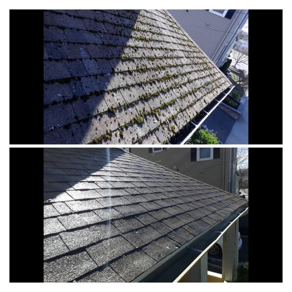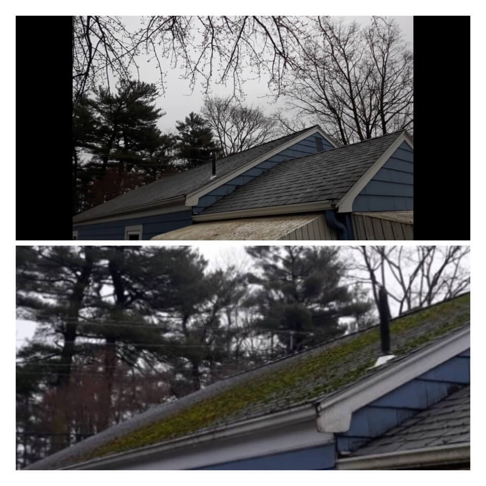 HiCleaners is the most experienced company in Medway, MA that deals with roof washing and roof soft washing. All of our employees are trained to recognize precise solution mixing ratios to provide you with the safest and most effective soft washing service. Roofs are a commonly neglected part of a house due to the fact that most people don’t have ladders to access it, so it is very easy to just leave it alone and forget about problems that may start to arise. Just like many home owners, discoloration and small bits of moss on a roof can be overlooked because of the misconception that it is just aesthetic. However, it isn’t just aesthetic, the moss slowly lifts the granules off the shingles which in turn shorten the life of the shingle. The moss also spreads, just like any bacteria if it is left alone for too long, it can quickly become a problem that spirals out of control. Call HiCleaners for a free quote, we only use the most advanced eco-friendly solutions and equipment to make sure the job is done right, for the safety of the employees, your plants, grass, pets, and children.